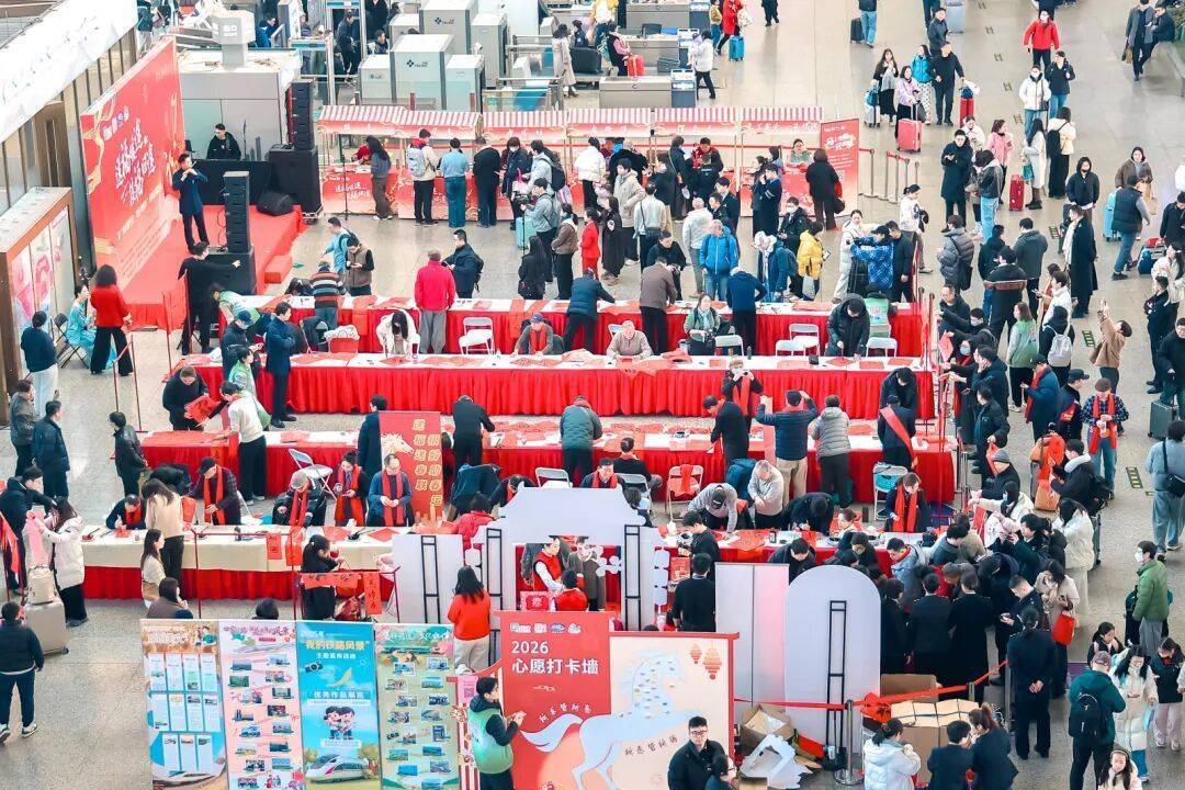 2月10日,有网友在社交网站发帖称,在上海虹桥站内领到了春联和福字。据上海闵行区相关部门发布的消息,春运期间,上海虹桥站出发层心尚服务工作室前,车站举办了充满年味的“送福暖途·接福归途”暨“我们的节日·欢乐中国年”迎新送福活动,为南来北往的人们铺就温暖归家路,旅客可在现场领取春联和福字。